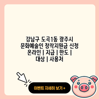 강남구 도곡1동의 문화예술인 창작지원금은 온라인으로 신청할 수 있어요. 신청 과정을 단계별로 살펴보도록 할게요.