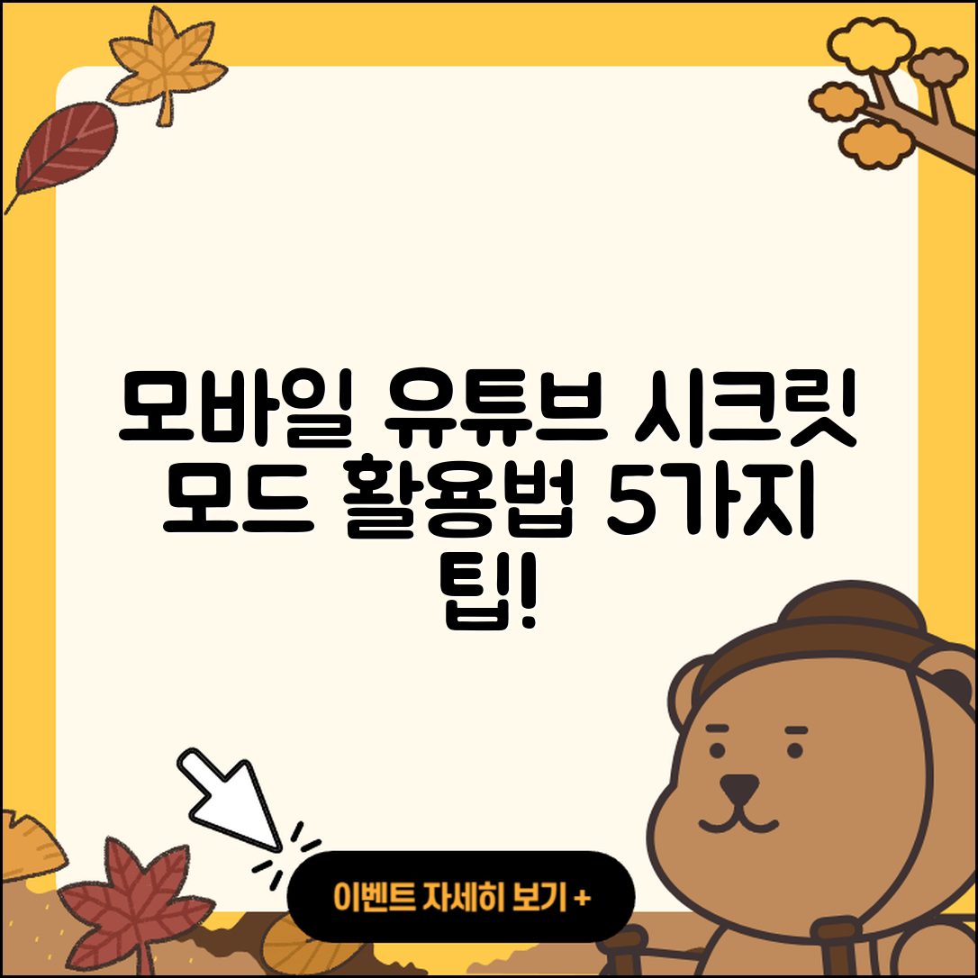 모바일에서 유튜브 시크릿 모드를 활용해본 적이 있으신가요? 많은 사람들이 개인적인 취향이나 비공식적인 콘텐츠를 즐기면서도 자신의 감상을 남에게 드러내지 않기를 원합니다. 이 글을 통해 유튜브 시크릿 모드를 제대로 사용하는 방법 5가지를 알아보면, 여러분의 유튜브 경험이 훨씬 더 즐겁고 자유롭게 변화할 것입니다. 자, 그럼 함께 살펴보아요!